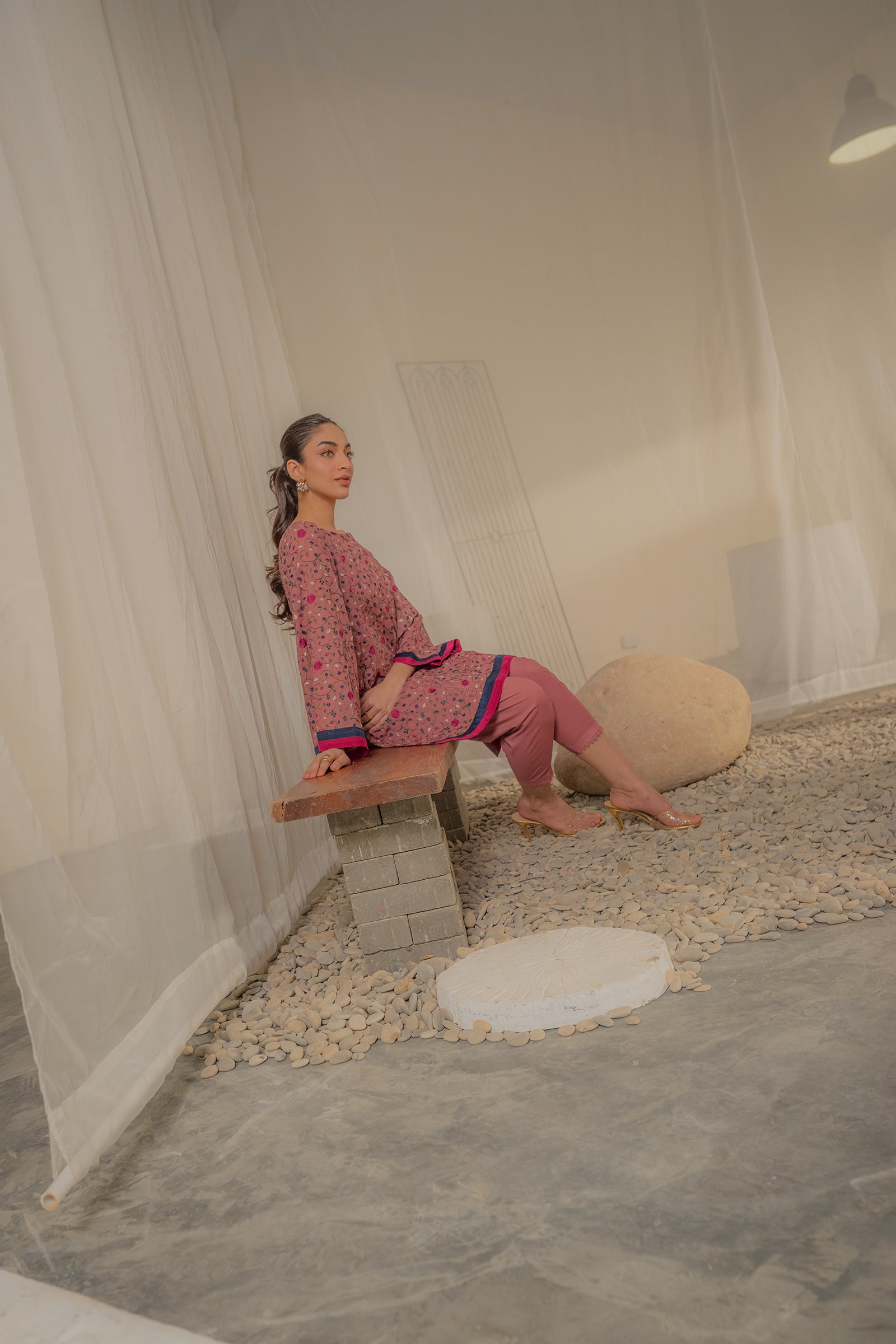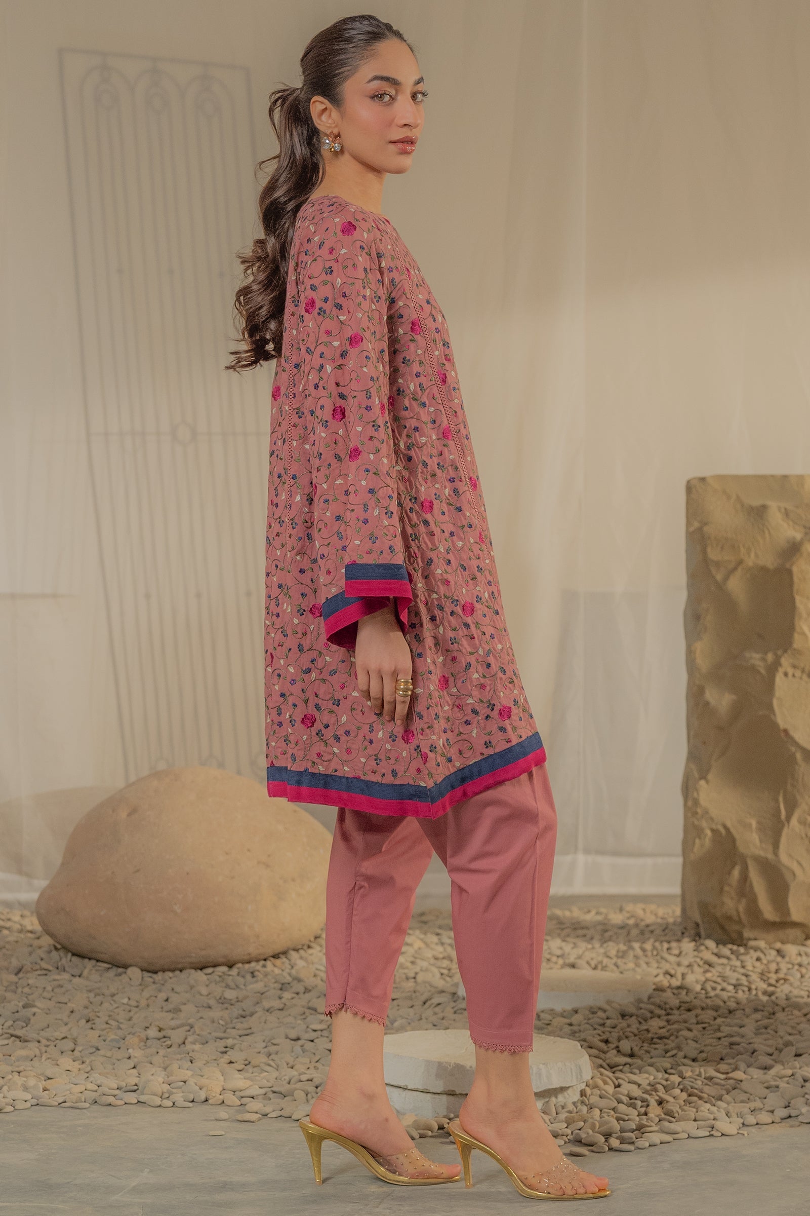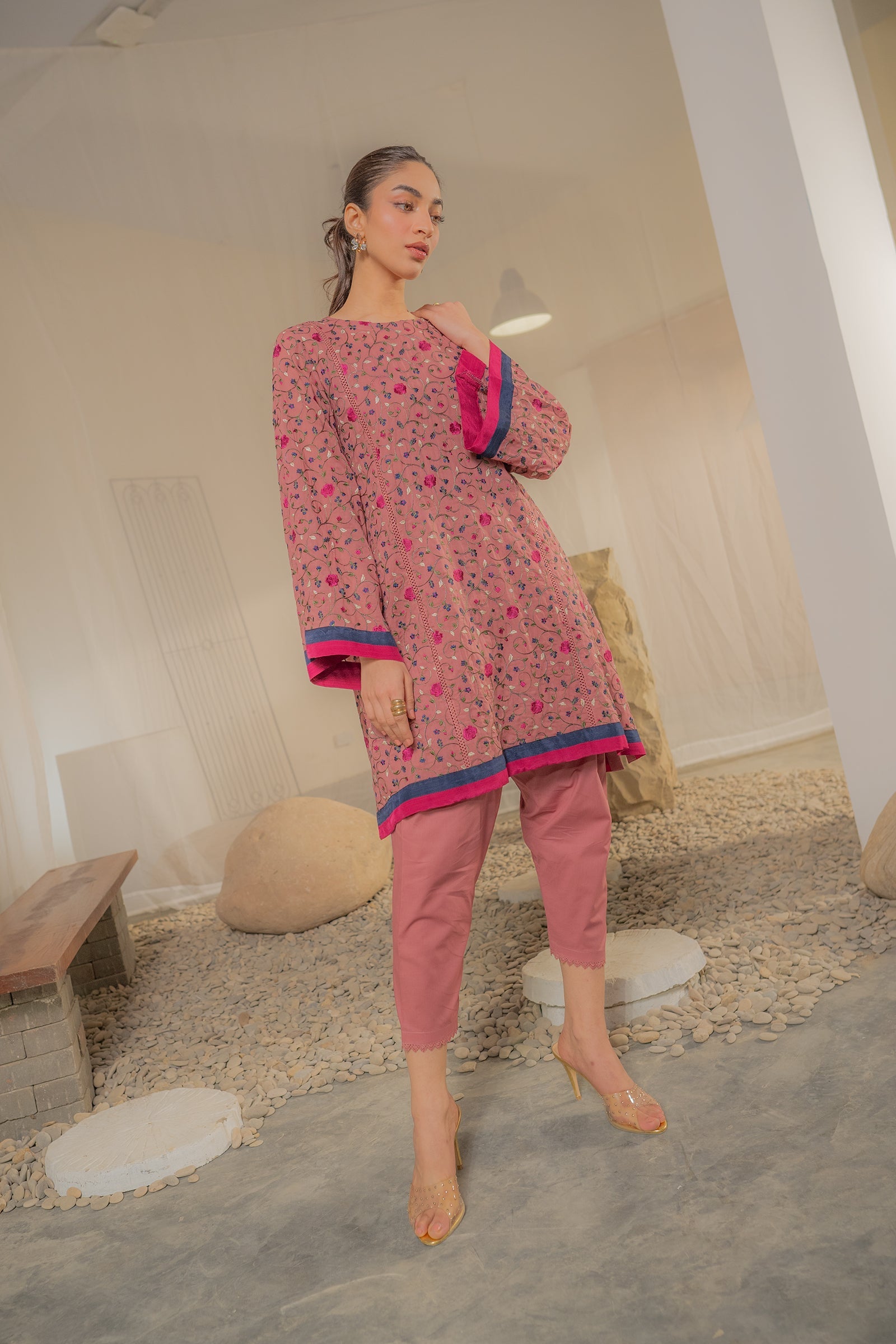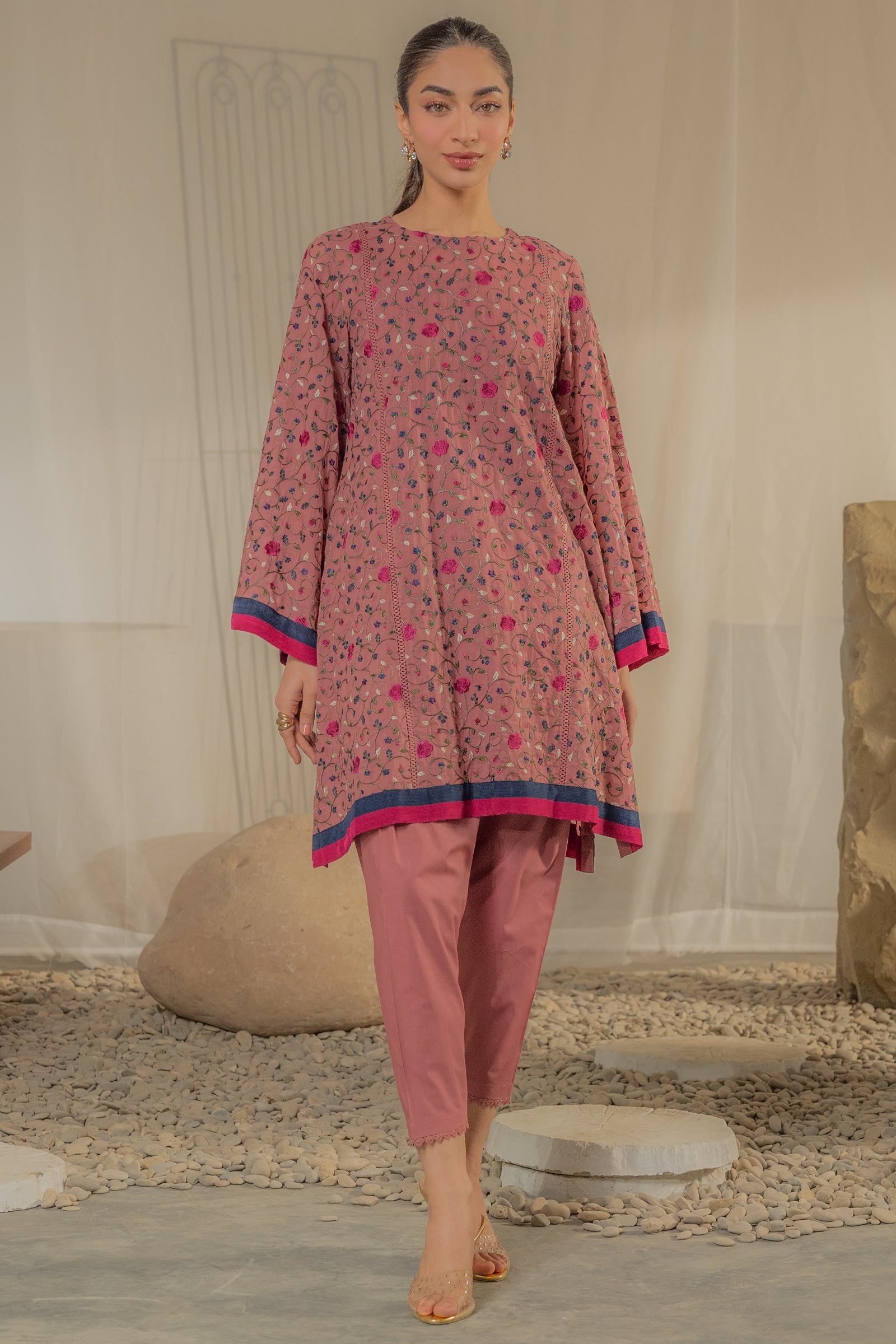 • 👖 Matching Straight Pants – Coordinated dusty rose trousers