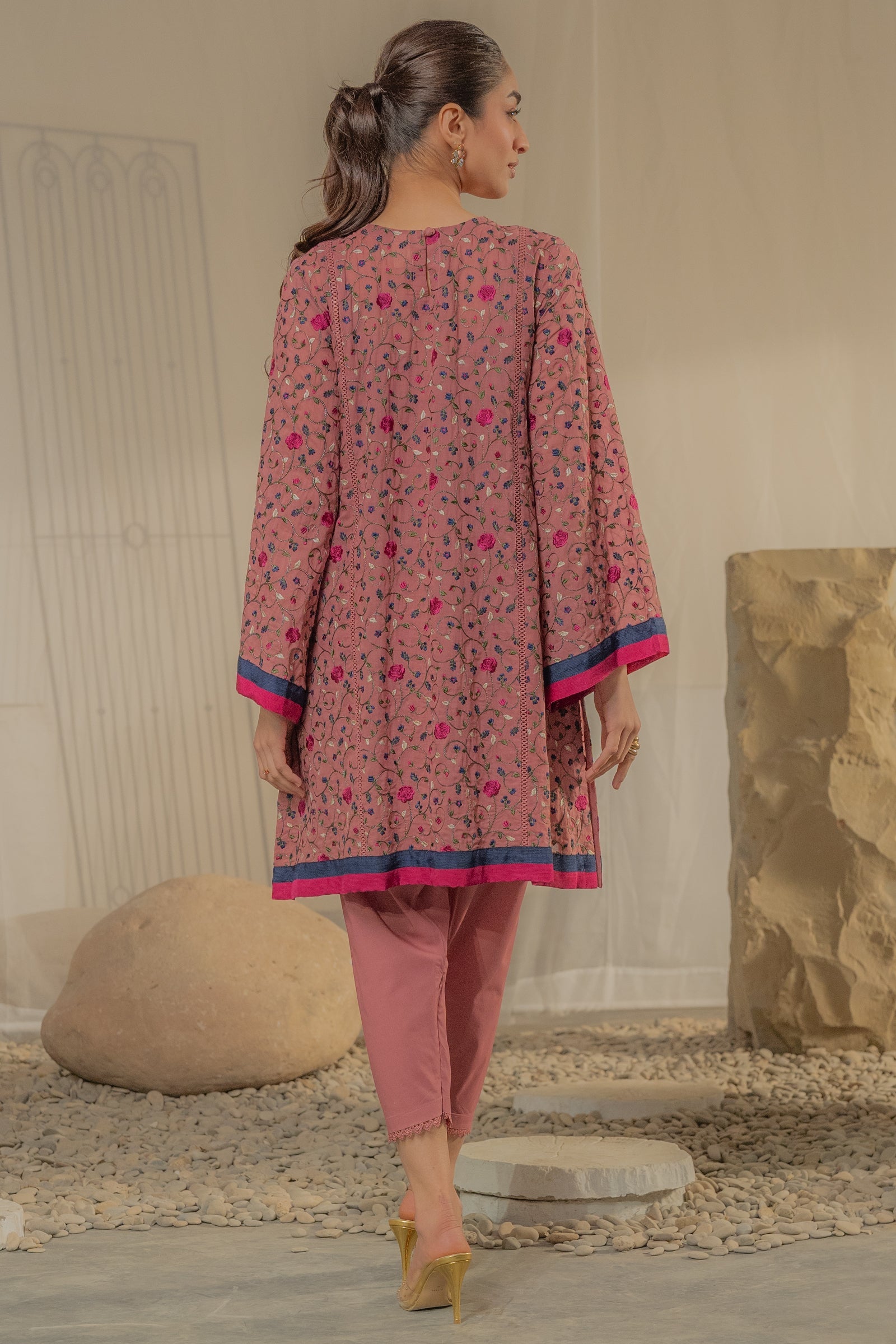 • 🎀 Contrast Border Detailing – Navy & magenta accents on hem and sleeves